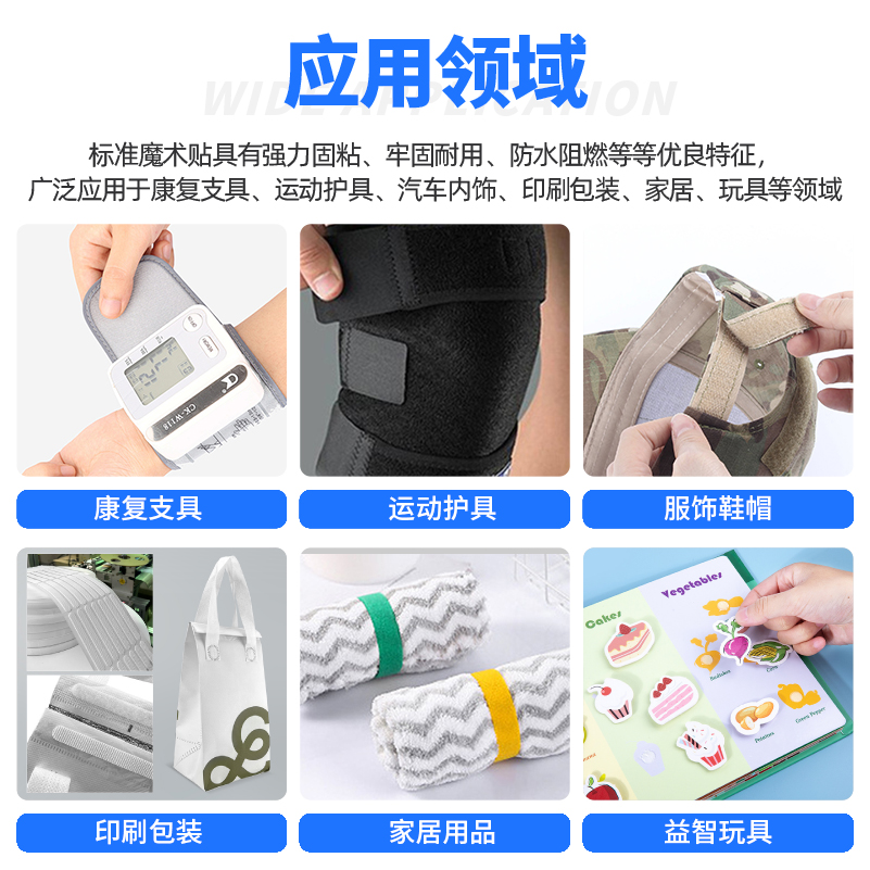 广泛应用于医疗、服装、包装、运动用品等领域,提供快速、方便的开合功能。