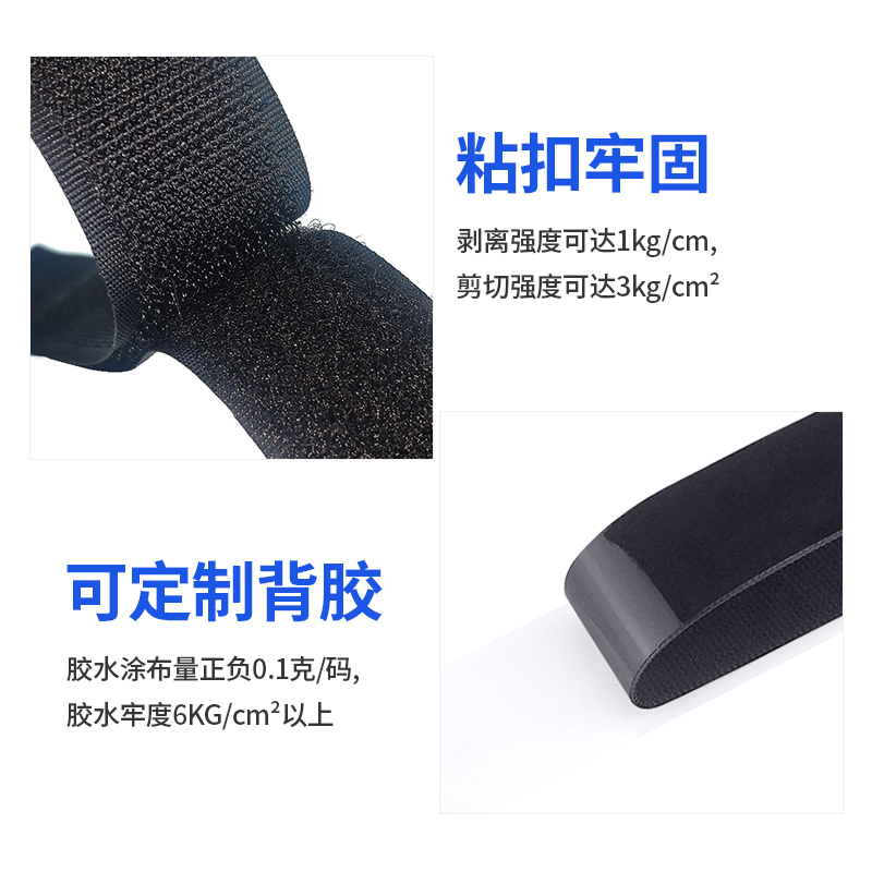应用高弹性尼龙制成的可重复使用的连接材料,对比普通魔术贴具有外观美观、色牢度高、不伤手的优点。