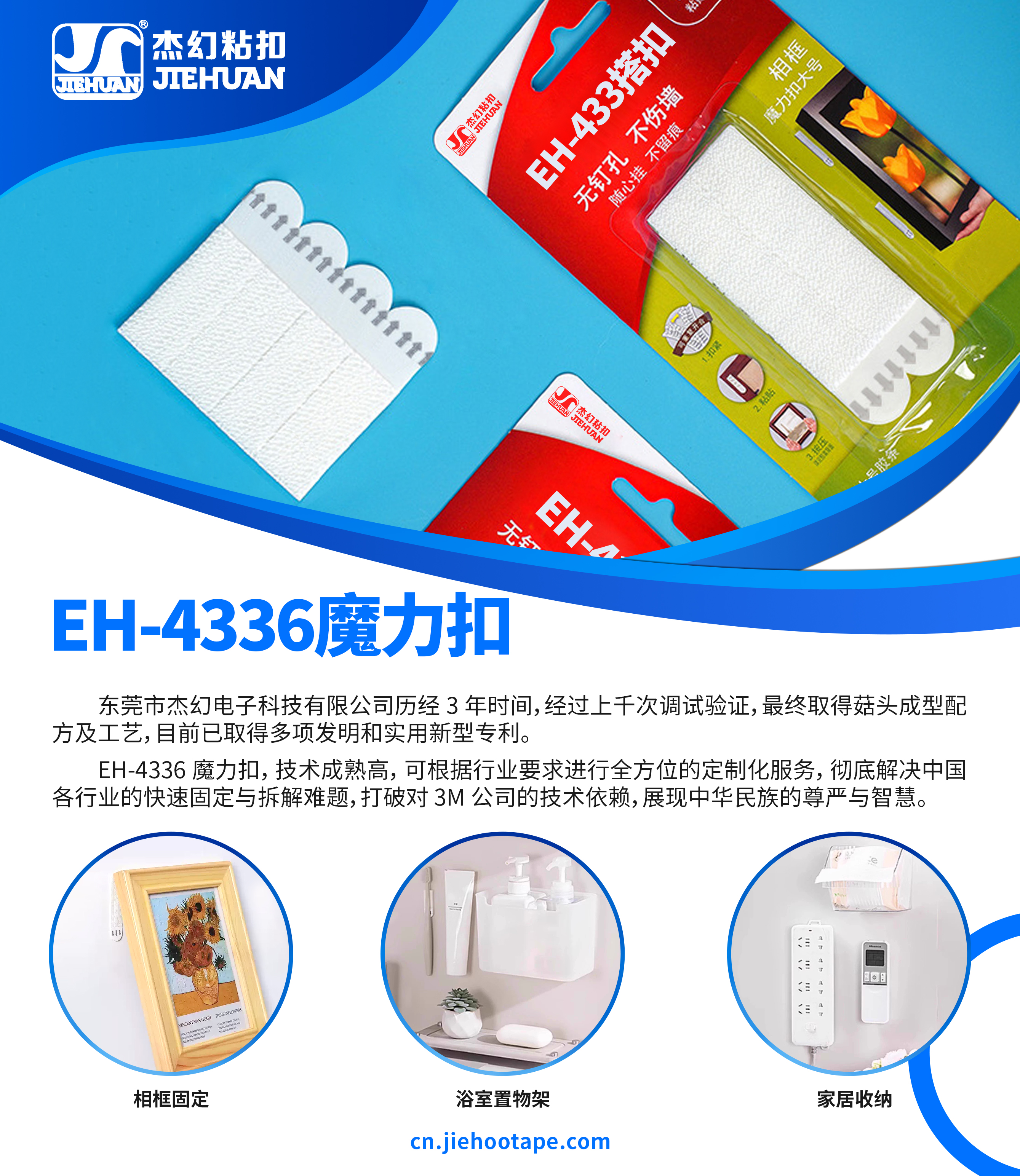 杰幻魔术贴在此次展会上重磅发布了全新研发产品——无痕魔力扣。这款创新产品融合了先进材料与独特结构,实现了强大的粘合力与无痕可拆卸的完美结合。它能牢固附着于玻璃、金属等光滑表面,同时在移除时不会留下任何残留或痕迹。这一颠覆性的技术为电子产品展示、临时固定和快速更换提供了前所未有的便利,迅速成为展会最受关注的焦点之一。